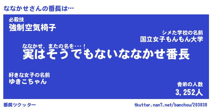 | ヘコむあだ名 | 『ななにゅー』『つくし』『ななっぺ』 |