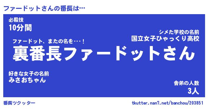 | ヒーロー風カッコイイあだ名 | 『スーパーファードット』『炎刃騎士ファ』 |