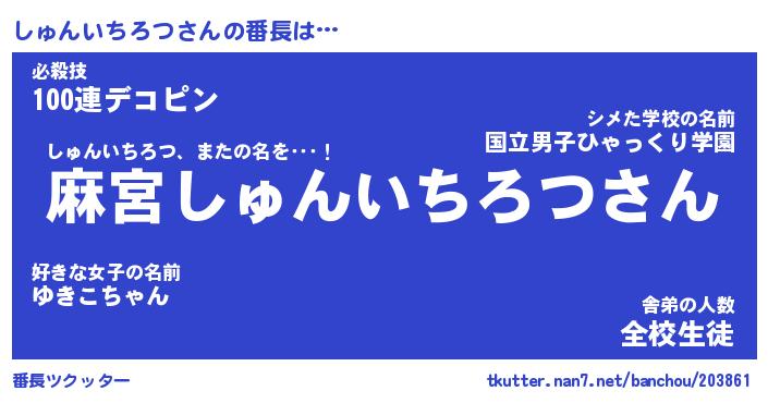 | 意味不明あだ名 | 『ペロリンしゅんいちろつ』 |