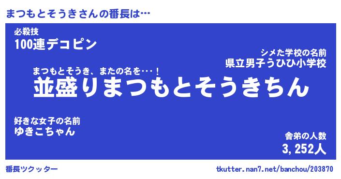 | ピコ太郎風あだ名 | 『マコ三郎』『ピマ史郎』『マツ十郎』 |