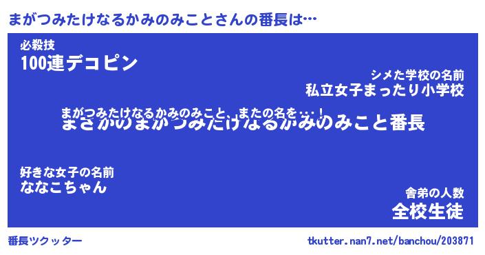| 肩書あだ名 | 『まがつみたけなるかみのみこと社長』 |