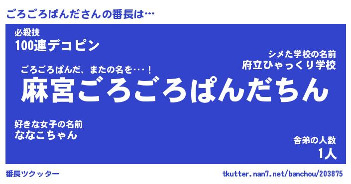 | ピコ太郎風あだ名 | 『ゴコ一郎』『ピゴ史郎』『ゴロ史郎』 |