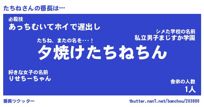 | ヒーロー風カッコイイあだ名 | 『スーパータチネ』『ウルトラたちねマン』 |