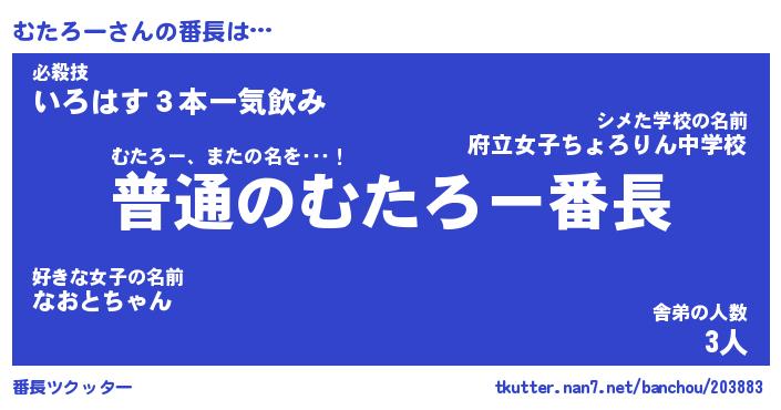 | 意味不明あだ名 | 『ペロリンむたろー』『永久保存むたろー』 |