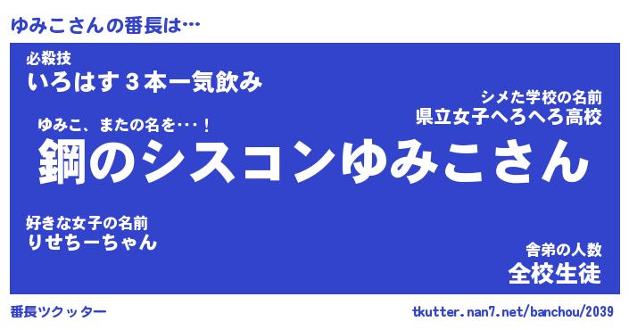 | 伝説のあだ名 | 『封印されしスナイパーゆみこ』 |