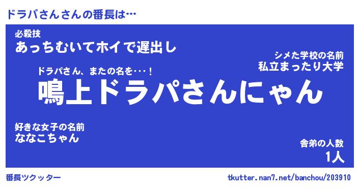 | 肩書あだ名 | 『ドラパさんCEO』『ドラパさん国家主席』 |