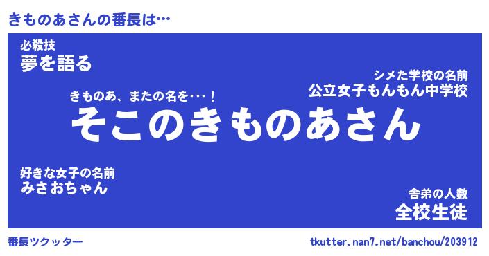 | 意味不明あだ名 | 『ペロリンきものあ』『永久保存きものあ』 |
