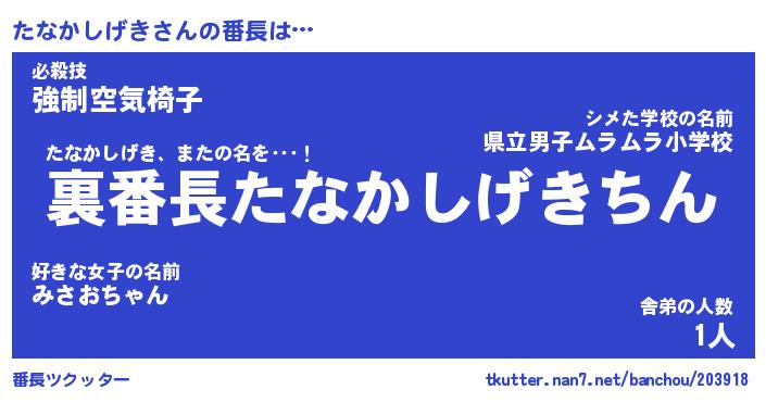 | ヒーロー風カッコイイあだ名 | 『スーパータナカシゲキ』『黄金騎士タナ』 |