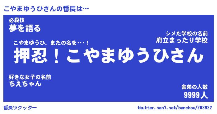 | 肩書あだ名 | 『こやまゆうひCEO』『こやまゆうひ教頭』 |