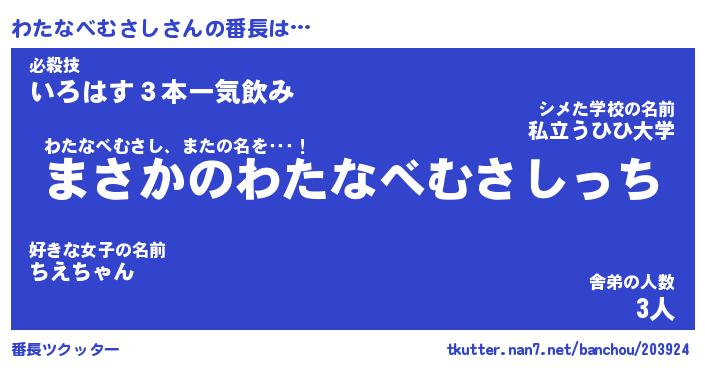 | ポケモン風あだ名 | 『ワタチュウ』『ワタナダネ』 |
