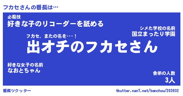 | ファンタジー風あだ名 | 『フカフェル』『エターナルフカセー』 |