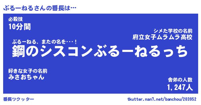 | 肩書あだ名 | 『ぶるーねる店長』『ぶるーねる大統領』 |