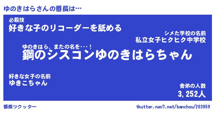 | ヘコむあだ名 | 『ゆのにゅー』『なまこ酢』 |