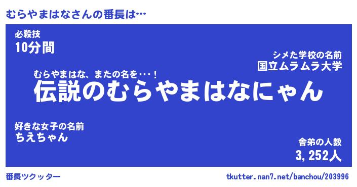 | ヒーロー風カッコイイあだ名 | 『スーパームラヤマハナ』『幻影騎士ムラ』 |