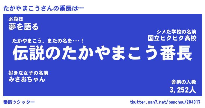 | 伝説のあだ名 | 『伝説のスナイパーたかやまこう』 |
