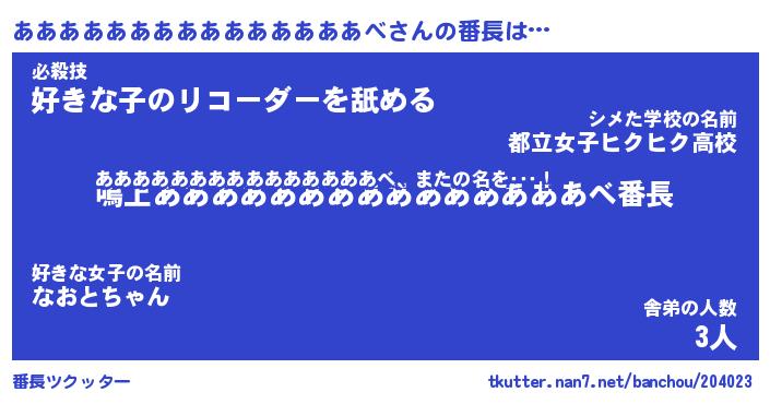 | 学校 | あああああああああああああああべ校長が勤める学校の名前『私立女子にょきにょき小学校』 |