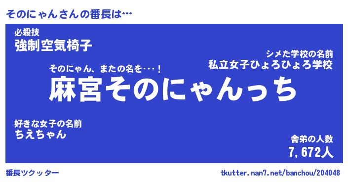 | ヒーロー風カッコイイあだ名 | 『スーパーソノニャン』『銀牙騎士ソノ』 |