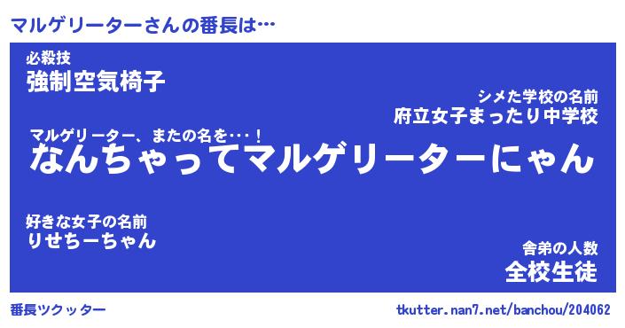 | 男性向けラノベタイトル風あだ名 | 『マルゲリーターの憂鬱』 |