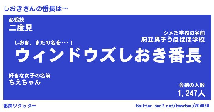 | 2回繰り返すあだ名 | 『しおしお』『ししおお』『ぬれぬれ』 |