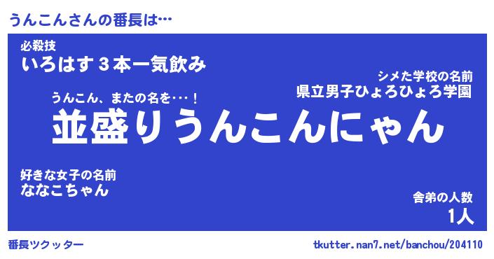 | ピコ太郎風あだ名 | 『ウコ八郎』『ピウ史郎』『ウン五郎』 |