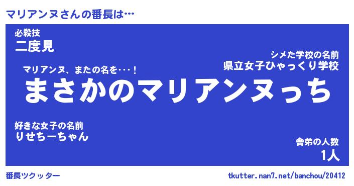 | ヘコむあだ名 | 『マリにー』『つくし』『マリを』 |