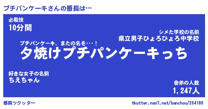 | 男性向けラノベタイトル風あだ名 | 『プチパンケーキアートオンライン』 |