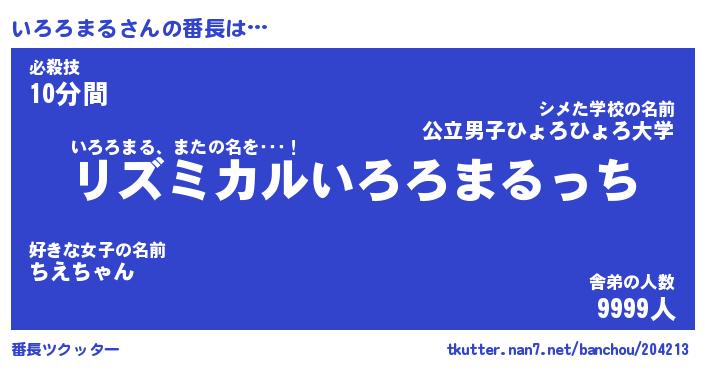 | 男性向けラノベタイトル風あだ名 | 『いろろまるの憂鬱』 |