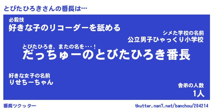| ポケモン風あだ名 | 『トビチュウ』『トビタダネ』 |