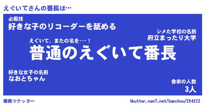 | ヘコむあだ名 | 『えぐにー』『酢こんぶ』『えぐ太郎』 |