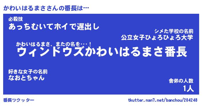 | 肩書あだ名 | 『かわいはるまさ御曹司』 |