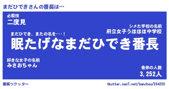 | ピコ太郎風あだ名 | 『マコ三郎』『ピマ五郎』『マダ太郎』 |