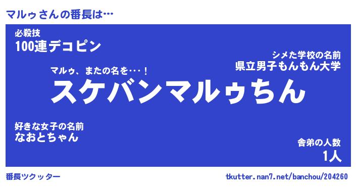 | 意味不明あだ名 | 『ペロリンマルゥ』『マルゥフォーエバー』 |