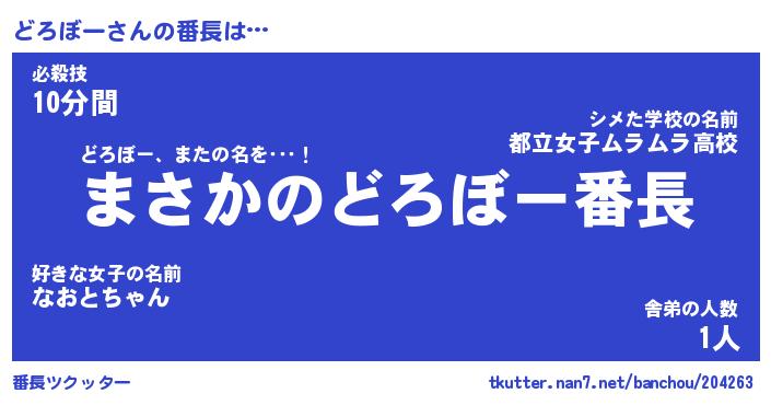 | 男性向けラノベタイトル風あだ名 | 『どろぼーの憂鬱』 |