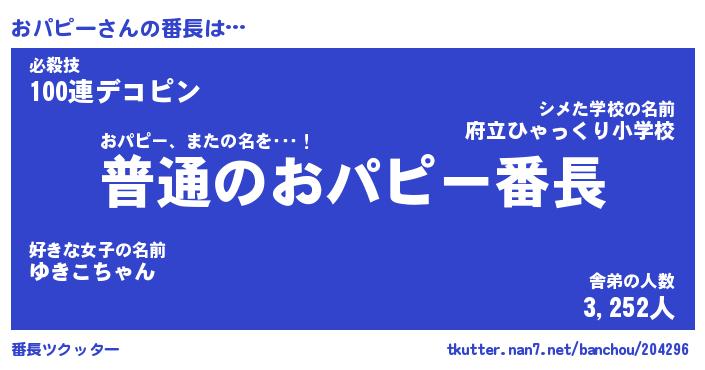 | 肩書あだ名 | 『おパピー社長』『おパピー総理大臣』 |