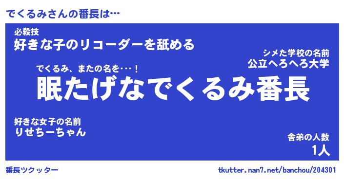 | ヘコむあだ名 | 『でくもー』『酢こんぶ』『でくっ子』 |