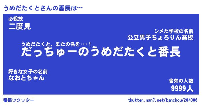 | ポケモン風あだ名 | 『ウメチュウ』『ウメダダネ』 |