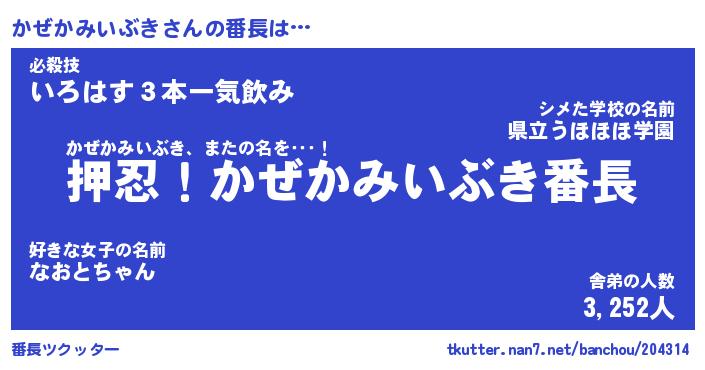 | 肩書あだ名 | 『かぜかみいぶき社長』 |