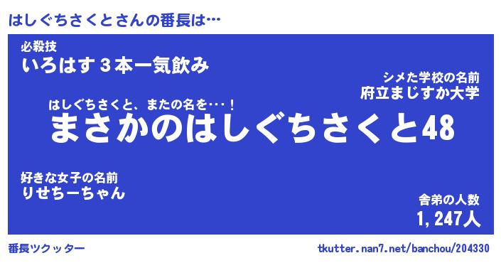 | 男性向けラノベタイトル風あだ名 | 『はしぐちさくとの憂鬱』 |