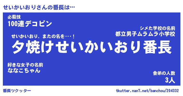 | 恥ずかしいあだ名 | 『プリティーせいかいおり』『せいっちょ』 |