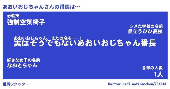 | ヒーロー風カッコイイあだ名 | 『スーパーアオイオジチャン』 |
