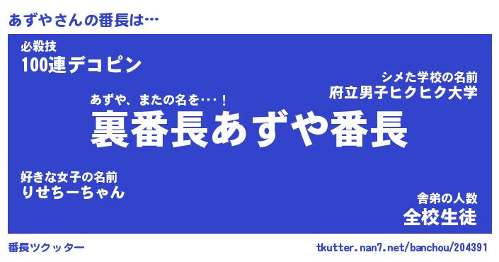 | 肩書あだ名 | 『あずや店長』『あずや大統領』 |