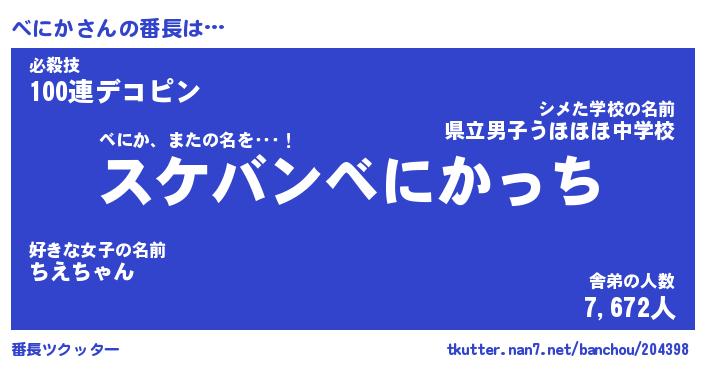 | 男性向けラノベタイトル風あだ名 | 『ベニカアートオンライン』 |