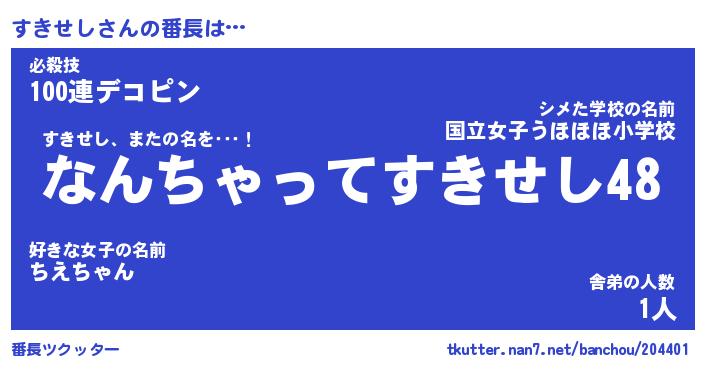 | 男性向けラノベタイトル風あだ名 | 『すきせしの憂鬱』 |