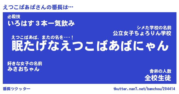 | 肩書あだ名 | 『えつこばあば店長』『えつこばあば塾長』 |