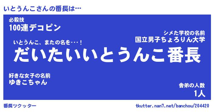 | 男性向けラノベタイトル風あだ名 | 『いとうんこの憂鬱』 |