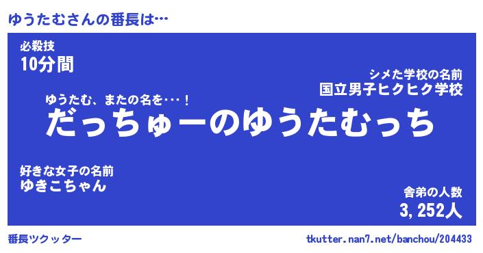 | 意味不明あだ名 | 『ペロリンゆうたむ』『永久保存ゆうたむ』 |