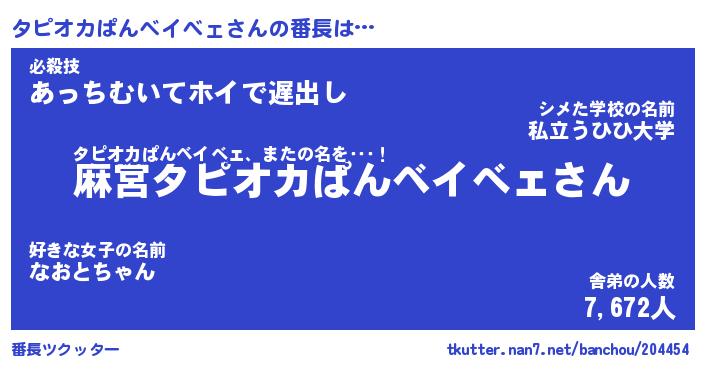 | ツイッター | タピオカぱんベイべェさんのツイッターID『dendenmushi_nyan』 |