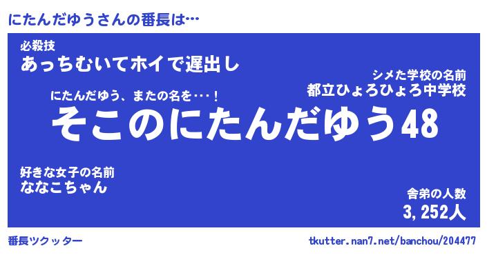 | ヒーロー風カッコイイあだ名 | 『スーパーニタンダユウ』『天弓騎士ニタ』 |