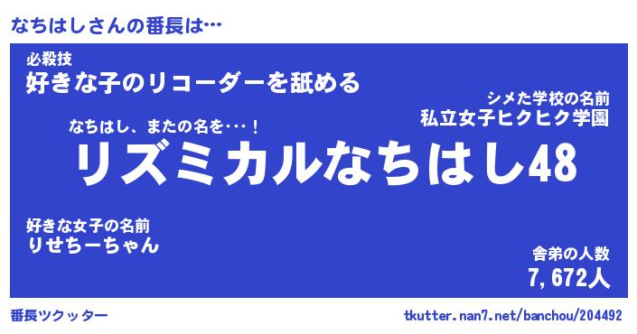 | 意味不明あだ名 | 『ペロリンなちはし』『永久保存なちはし』 |