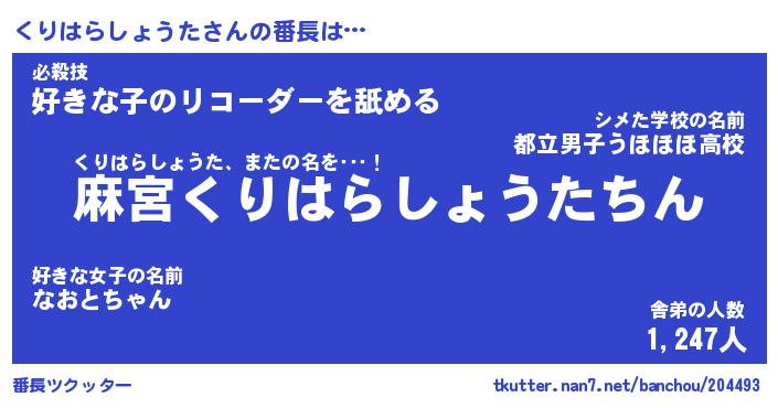 | 意味不明あだ名 | 『ペロリンくりはらしょうた』 |